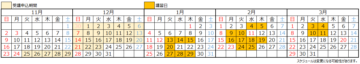 2026年1月13日~3月11日(計23回10時~17時)(対面形式)