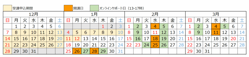 開講日以外でもオンラインサポート日にはオンライン受講システムを通じて、リモートでの質問や講師への相談にも対応します。